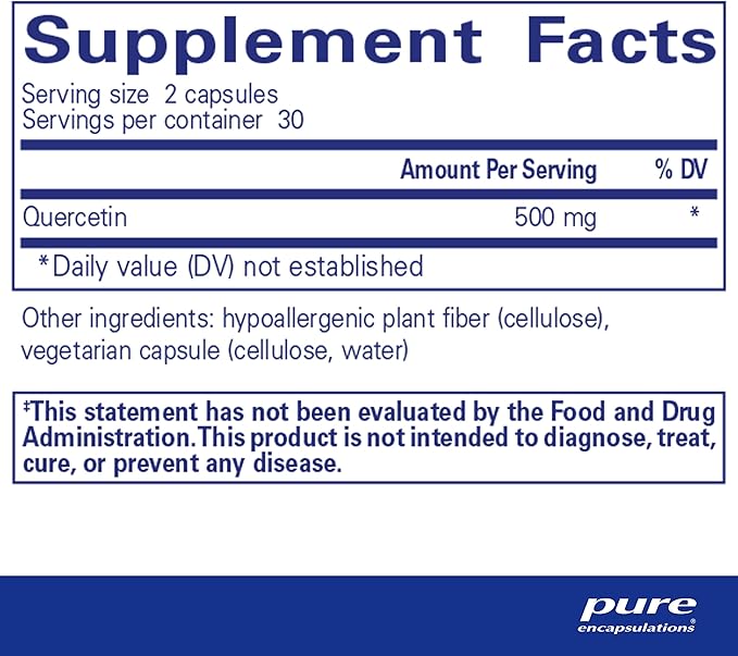 - Quercetin Supplement: Pure Encapsulations Quercetin contains 500 mg of high-concentration quercetin per serving