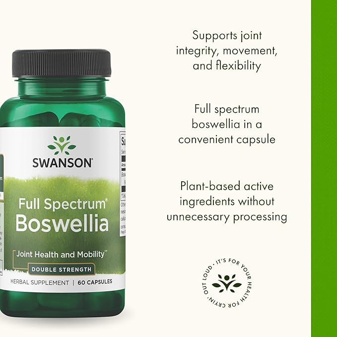 Swanson Double Strength Boswellia - Herbal Supplement Promoting Joint Support - Ayurvedic Herb for Joint Flexibility & Mobility Support - Made w/Boswellia Serrata Resin - (60 Capsules, 800mg Each)
