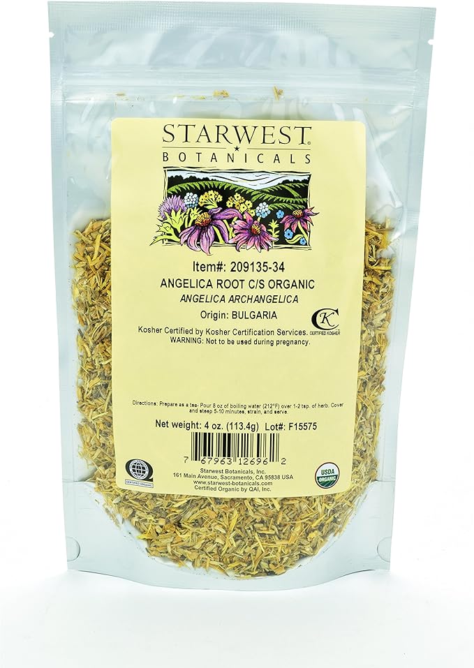 Starwest Botanicals Organic Angelica Root C/S, 4 Ounces