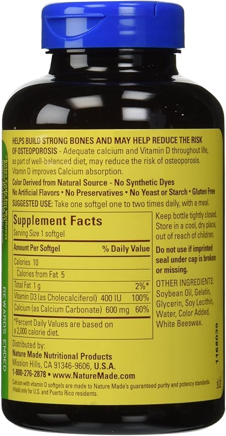 Nature Made Calcium 600 Mg with Vitamin D, 100 Liquid Softgel (6 Pack)