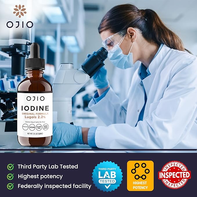 - ✅ SUPERIOR ABSORPTION & MAXIMUM POTENCY - Our liquid formula makes it quicker and easier to absorb than pills. Ojio's Lugol's Iodine Solution is scientifically formulated as a highly concentrated liquid to maximize the amount of iodine your body absorbs and utilizes. It can be taken orally or applied externally to the skin, allowing for fast absorption so that you start reaping benefits virtually instantly upon use. Suitable for women, men, and kids.