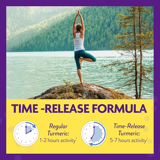 - Time-Released Absorption - While standard curcumin extract is quickly cleared from the body in an hour or two, this turmeric black pepper supplement incorporates BioPerine for sustained release of curcuminoids over 5-7 hours, prolonging its activity.