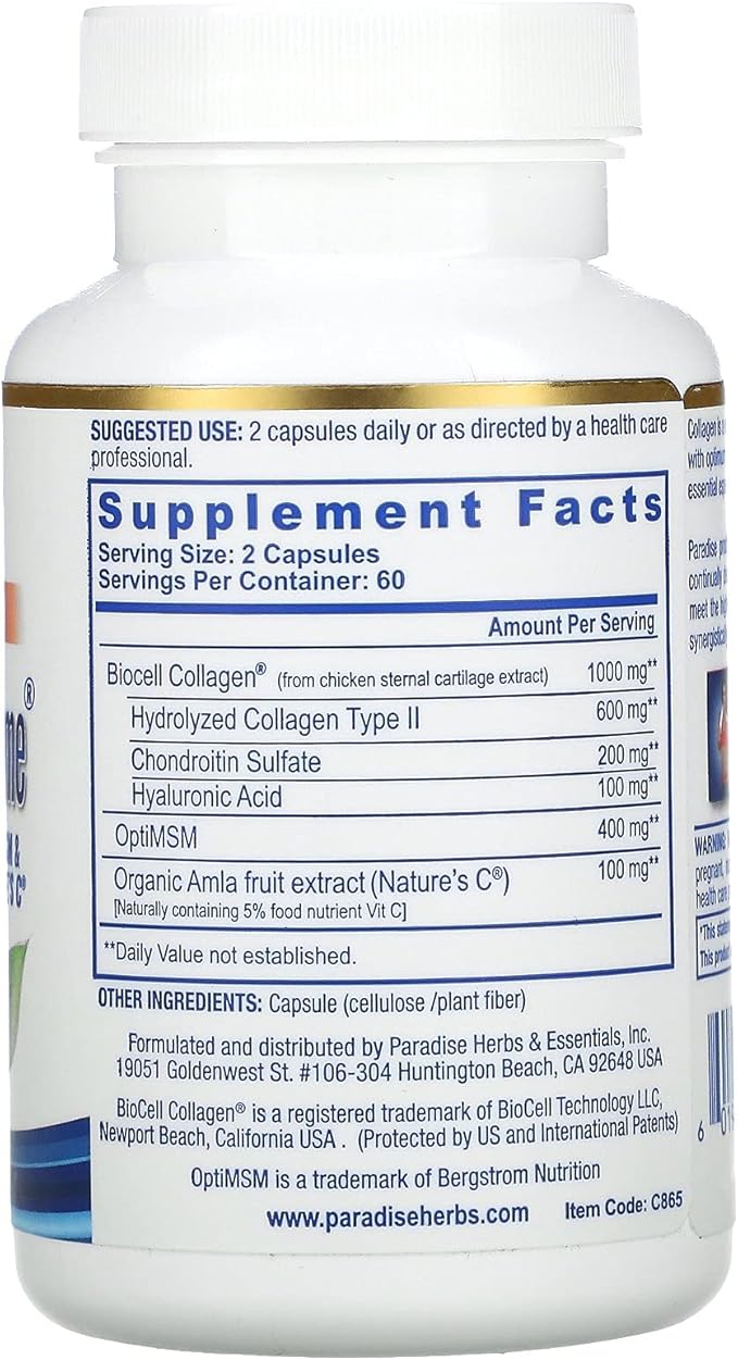 Paradise Herbs Collagen Extreme with Biocell Collagen, Hyaluronic Acid, and Nature's C, for Healthy Hair, Skin, and Joints, 60 Capsules