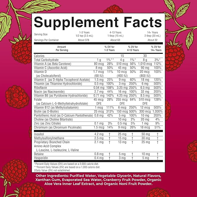 - For Most Lifestyles: MaryRuth's Raspberry Liquid Morning Multivitamins for Women, Men, Kids is Non-GMO, Vegan, Dairy Free, Nut Free, Gluten Free, Sugar Free. Each bottle comes with 30-32 servings. Multivitamin for women 50 and over, under 50, men 50 and over, under 50, and kids ages 2+. B Corp Certified.