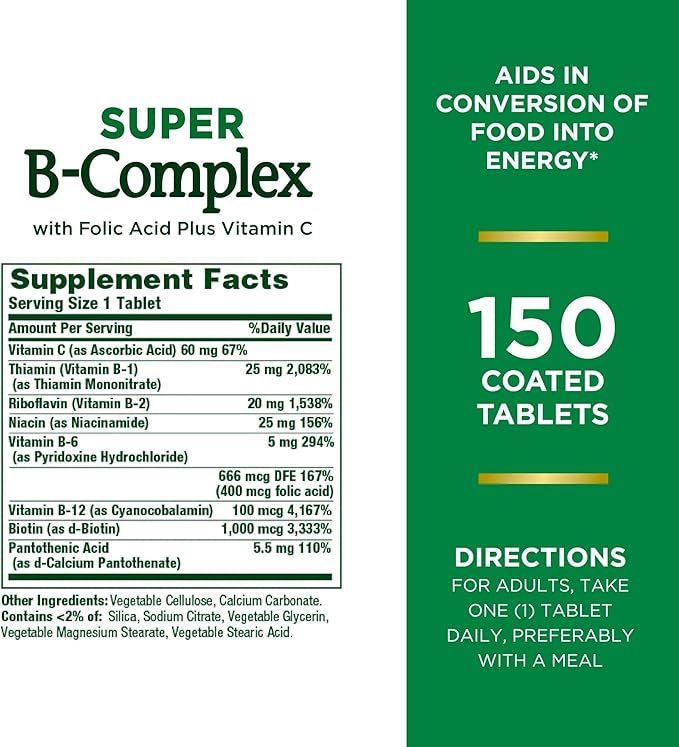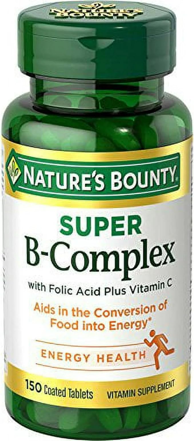 Nature's Bounty Super B-complex with Folic Acid Plus Vitamin C, 300 Tablets (2 X 150 Count Bottles)