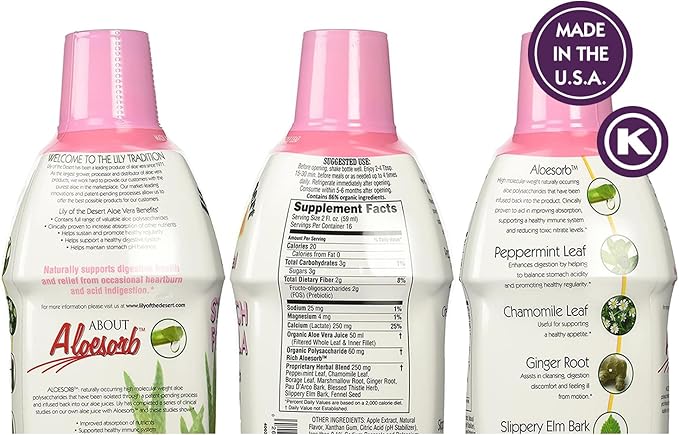 - NATURAL DIGESTIVE WELLNESS: Organic aloe vera juice and a proprietary blend of herbs support overall wellness and stomach relief for occasional bouts of heartburn and acid indigestion.