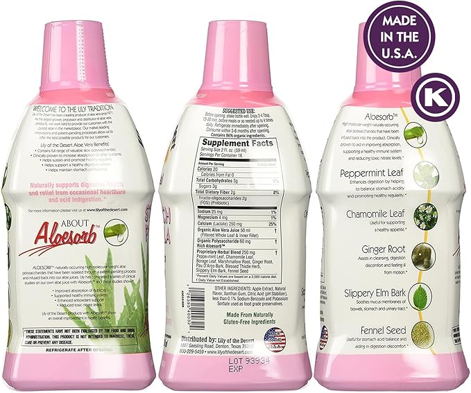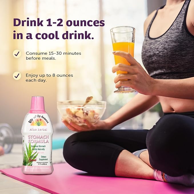 - SUGGESTED USE: Drink 2 ounces of Lily of the Desert’s Aloe Vera Stomach Formula, as needed, up to four times a day.