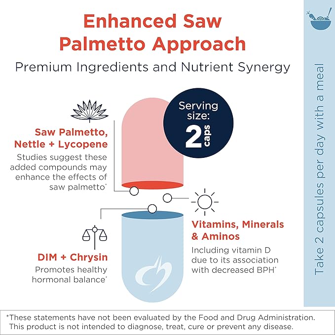 - Saw Palmetto & More - Contains Zinc, Lycopene, Saw Palmetto, Glycine, Alanine, Glutamic Acid, DIM (Diindolylmethane) and Chrysin. *