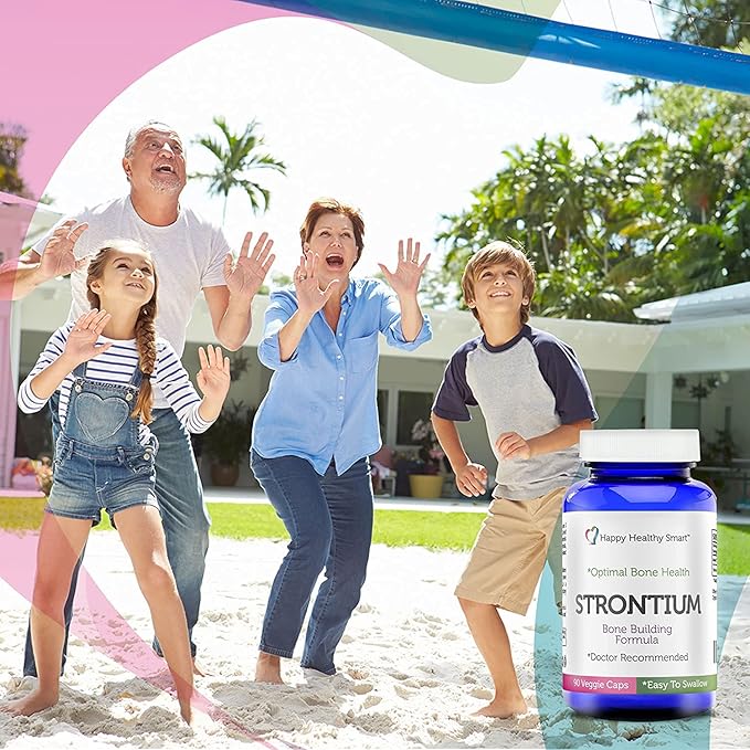 - RECOMMENDED HEALTHY BONE AND JOINT GROWTH SUPPLEMENTS - Strontium supplements for women and men is doctor recommended for promoting new bone growth and slowing down the breakdown of old bone. Please consult a doctor before starting a new regiment. For optimal bone strength growth, keep active and be Happy Healthy Smart with our bone strength supplements