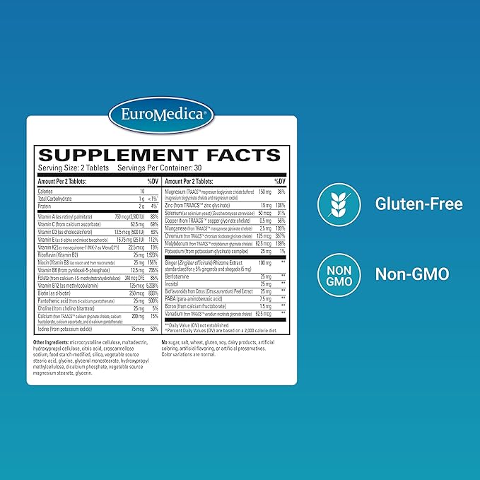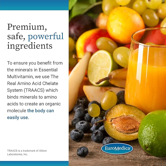 Euromedica Essential Multivitamin - Dietary Supplement to Aid Bone, Cardiovascular & Immune Health - Supplement with Chelated Minerals, B-Vitamins & Vitamin C - 60 Tablets