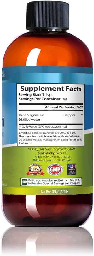 - ✅ MAGNESIUM IS INVOLVED IN HUNDREDS OF FUNCTIONS IN YOUR BODY: Nutrinoche colloidal magnesium is made with only two ingredients. 99.99% crystalline nano magnesium particles and pure vapor distilled water. There are no fillers, additives, salts or proteins. Due to the tiny particle size and ultra purity you get a premium magnesium supplement with the highest quality, safety and potency on the market.