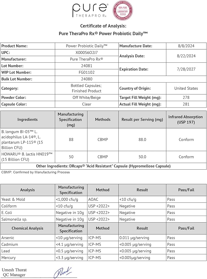 - Special Ingredients : Bifidobacterium longum Bl-05, Lactobacillus acidophilus La-14, HOWARU® Bifido (Bifidobacterium lactis HN019), Lactobacillus plantarum Lp-115 Bifidobacterium longum Bl-05, Lactobacillus acidophilus La-14, HOWARU® Bifido (Bifidobacterium lactis HN019), Lactobacillus plantarum Lp-115
