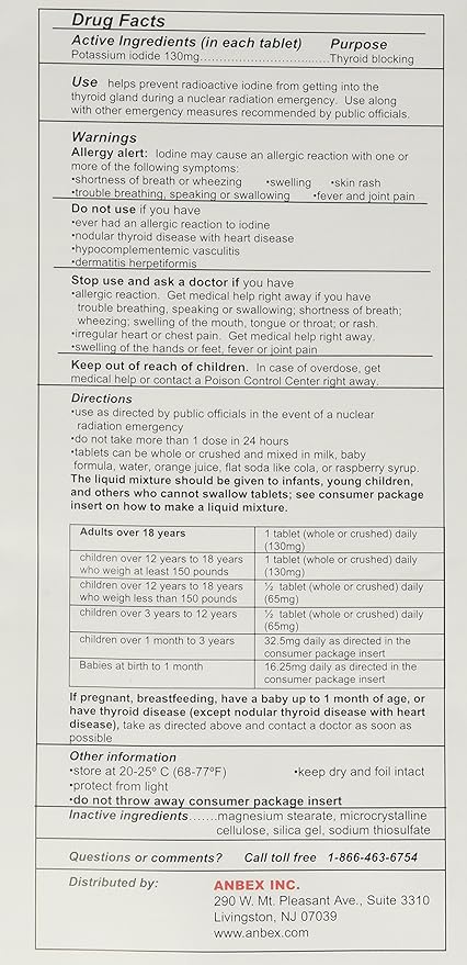 - 130 mg Potassium Iodide per tablet