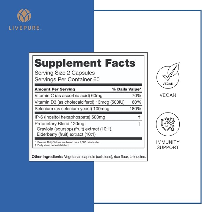 - Immunity vitamins: Our Immune6 is a vegetarian source of Vitamin C, D3 & IP6 also a Selenium supplement that gives your body the vitamins & fortification it needs to sustain health & well-being.