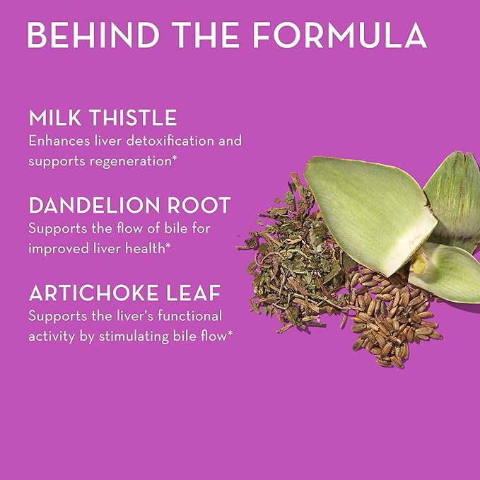 - CLINICALLY PROVEN INGREDIENTS: Formulated with key ingredients like Silymarin (milk thistle), dandelion root & artichoke leaf, all known for their powerful antioxidant properties that boost liver health.