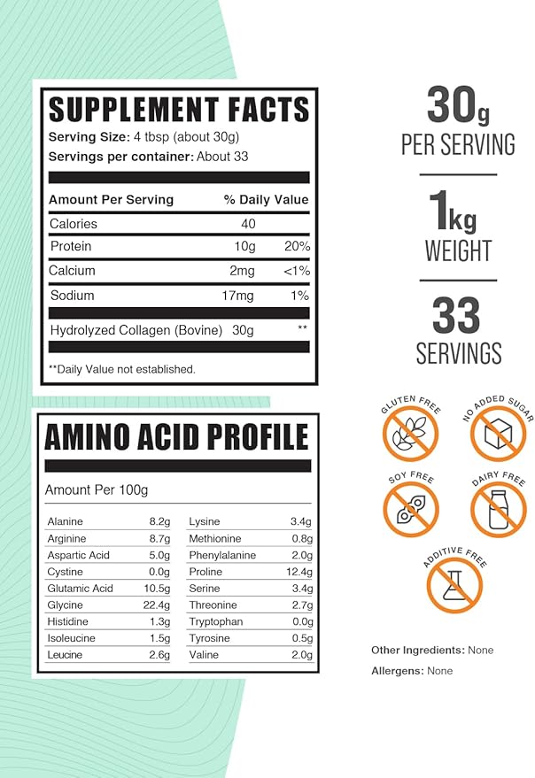 - Your Ultimate Health Ally: Collagen is the powerhouse protein forming the building blocks of your body — think of it as nature's architect for your hair, skin and nails. Our Collagen Peptides powder, in Bovine Collagen powder, is your gateway to tapping into this natural reserve, promising to enhance your innate allure with every serving.