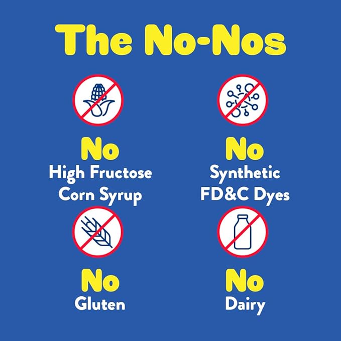 - Contains no high-fructose corn syrup, no synthetic (FD&C) dyes, no dairy and no gluten.