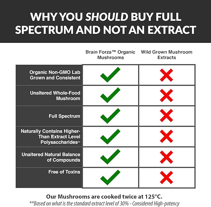 Brain Forza Organic Turkey Tail Mushroom Capsules, Mushroom Powdered Immune Support, Liver and Digest Health Support, Organic Defense Support, Non-GMO, Vegan, Organic, 90 Capsules