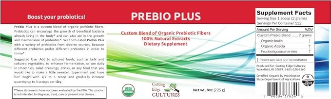Prebio Plus Prebiotic Fiber Powder Best Custom Blend of Organic Prebiotic Fibers Dietary Supplement 8 oz