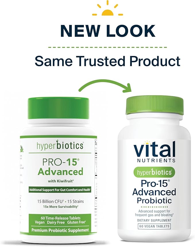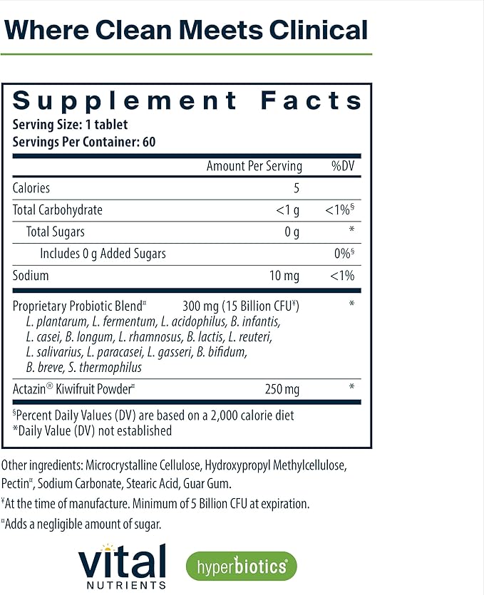 Hyperbiotics Vital Nutrients Pro-15 Advanced Probiotics for Women and Men | 15 Strains + Kiwifruit | Clinically Studied Daily Probiotics for Digestive Health, Gas, & Bloating | 60 Vegan Tablets