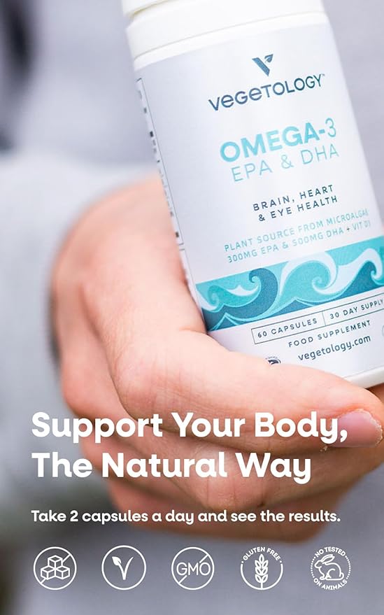 - Vegan Omega 3 Supplements: Putting even more 'good' into 'good fats', Vegetology’s natural Omega 3 vegan supplement is created directly from microalgae grown in a lab. Our vegan Omega 3 DHA EPA supplements offer all the benefits of fish oil Omega-3 without the safety, sustainability, or purity concerns associated with fish sources.