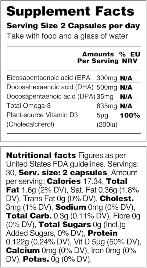 - Powerful Ingredients: Our plant based Omega 3 supplement provides a high dose of EPA and DHA, the bioavailable forms of Omega-3 that the body needs for maximum absorption. With 500 mgs of DHA and 300 mgs of EPA, our vegan capsules are actually higher strength than most fish oil Omega 3 supplements!