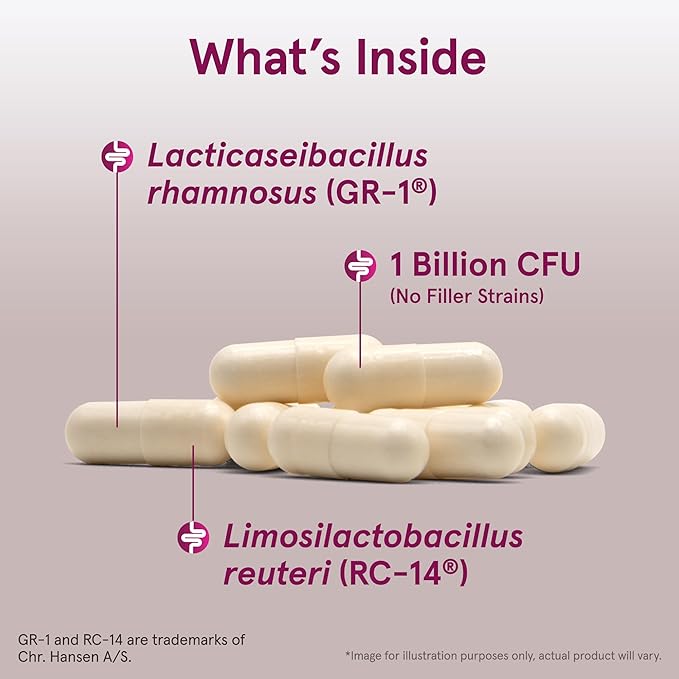 - 2 CLINICALLY EFFECTIVE PROBIOTIC STRAINS: Women’s health probiotic with Lactobacillus rhamnosus GR-1 and Lactobacillus reuteri RC-14, two of the most clinically published strains for vaginal health worldwide(2)