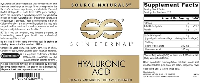 Source Naturals Skin Eternal Hyaluronic Acid, 50 mg - 240 Tablets