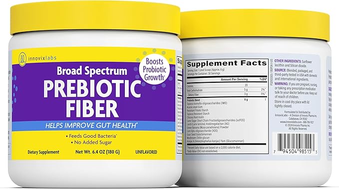 - Daily Fiber Supplement - Dietary fiber often falls short in modern diets, yet it's crucial for digestive health & gut flora. InnovixLabs prebiotic fiber powder includes over a dozen essential fibers, providing an effortless way to boost daily intake.*