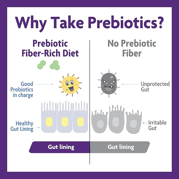 - Broad Spectrum Prebiotic Blend - With all 3 major classes of prebiotics (soluble fiber, non-starch polysaccharides, resistant starches) this gut supplement has Prebiotic Greens, Resistant Starch Prebiotic, Chicory Root, FOS, Acacia, Inulin and more.
