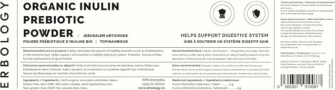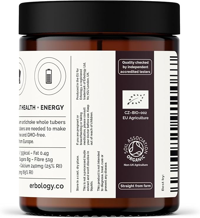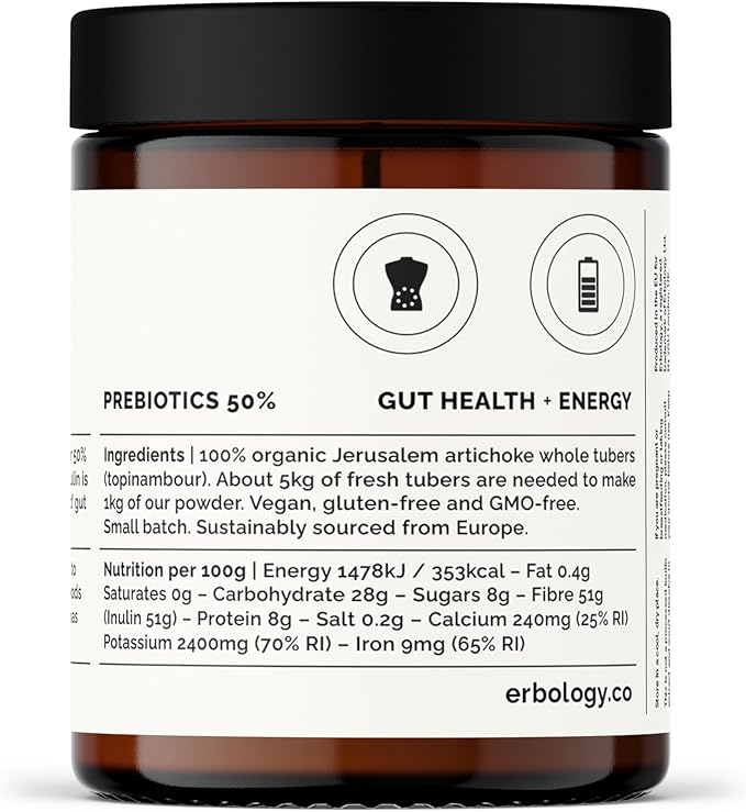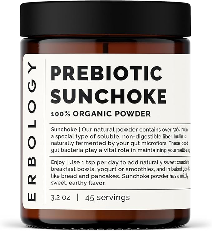 Erbology Organic Jerusalem Artichoke Powder 3.2 oz - 45 Servings - Sunchoke - 50% Prebiotic Inulin Fiber - Supports Gut Health and Promotes Diverse Microbiome - Feed Good Bacteria - Gluten-Free