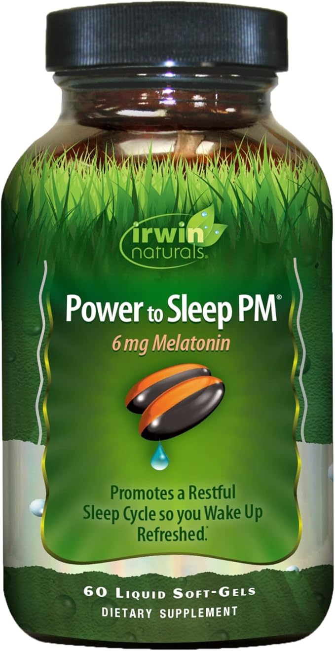 Irwin Naturals Power to Sleep PM - 60 Liquid Soft-Gels - with 6mg Melatonin, GABA, Ashwagandha, Valerian Root & L-Theanine - 30 Servings