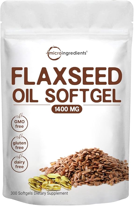 - Micro Ingredients Flaxseed Oil 1400MG, 300 Counts (300 Days Supply), Cold Pressed, No GMOs.