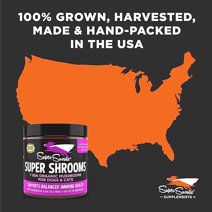 Super Snouts Super Shrooms Mushroom Immune Support Supplement for Dogs and Cats, 2.64 oz - Made in USA Organic Non-GMO, Immune Health for Strong Immunity, 7 Mushroom Blend Powder