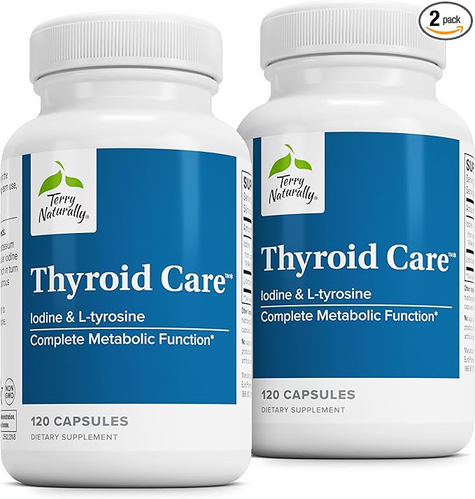 Terry Naturally Thyroid Care - Immune Health & Energy Support Formula - Nutritional Supplement with Iodine for Thyroid Health Support - Wellness Supplement with L-Tyrosine - 120 Capsules (Pack of 2)