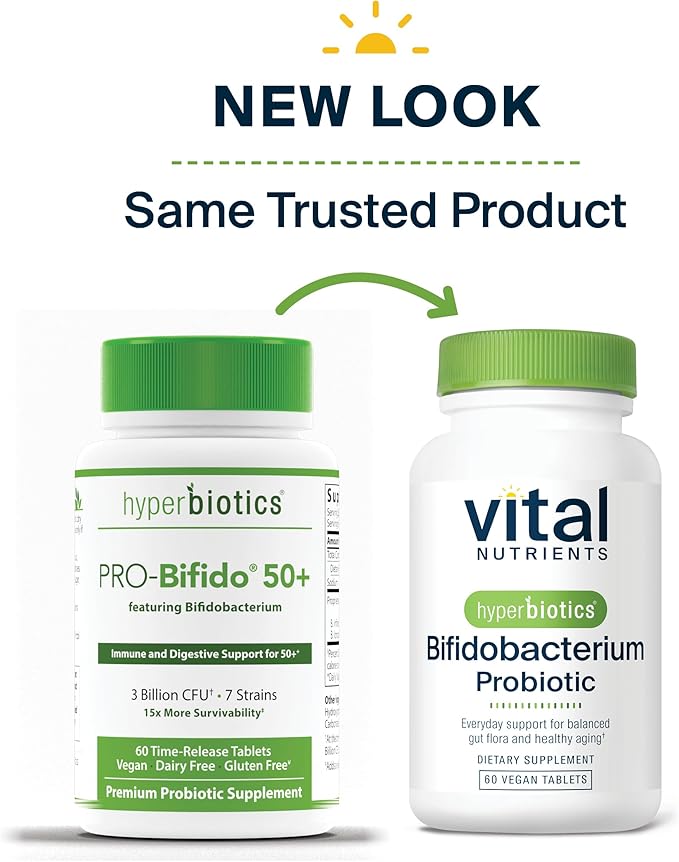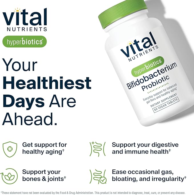 Hyperbiotics Vital Nutrients Bifidobacterium Probiotic | 7 Targeted Strains | Supports Immune and Digestive Health for Older Adults | Shelf-Stable | Vegan | 60 Tablets