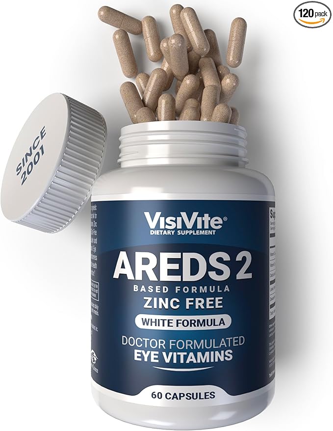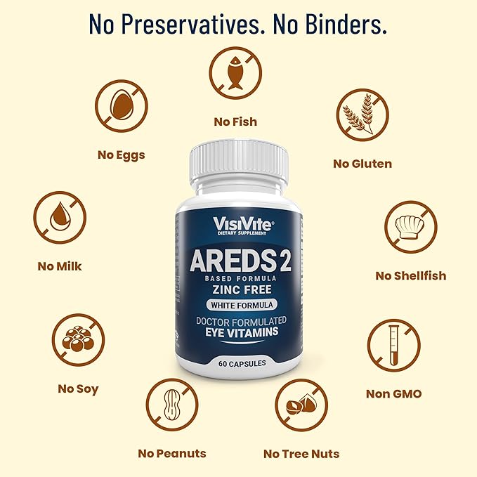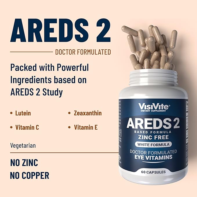- Special Ingredients : VisiVite AREDS2 No-Zinc White Formula contains Lutein, Zeaxanthin, Vitamin C, and Vitamin E, but not zinc or copper, as recommended by this research. VisiVite AREDS2 No-Zinc White Formula contains Lutein, Zeaxanthin, Vitamin C, and Vitamin E, but not zinc or copper, as recommended by this research.