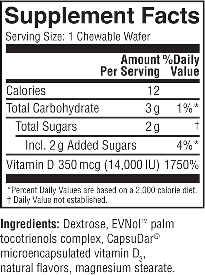 14,000 IU Vitamin D3 Cholecalciferol Vitamin D Deficiency Once-Weekly Chewable Wafer, Non-GMO, Natural Orange Flavor, 8 Tablets (Pack of 2)