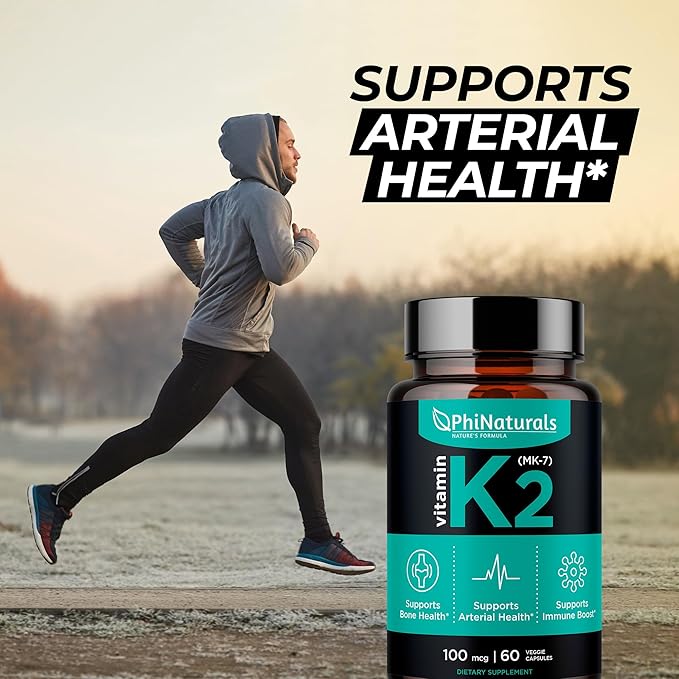 PhiNaturals Vitamin K2 Mk7 100 mcg Vegan 60 Capsules Bone Health Heart Cardiovascular Arteries - VIT k-2 MK-7 100mcg Supplement from Natto