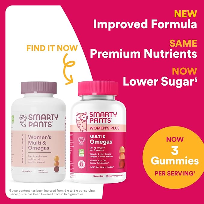 - PREMIUM, SCIENCE-BACKED GUMMY MULTIVITAMIN FOR WOMEN: SmartyPants Women’s Multi & Omegas contains more nutrients than the leading women’s multi gummy and is made to help fill nutrient gaps. Based on $ Sales, IRI InfoScan, and MULO, 05/2022-05/2023
