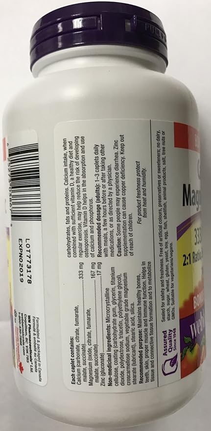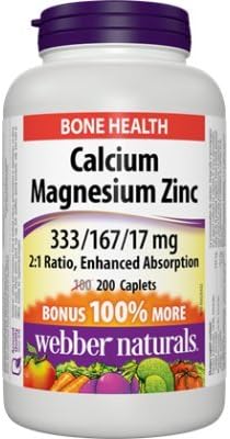 Webber Naturals Calcium Magnesium Zinc, Enhanced Absorption, 333/167/17 mg, Bonus 200 caplets
