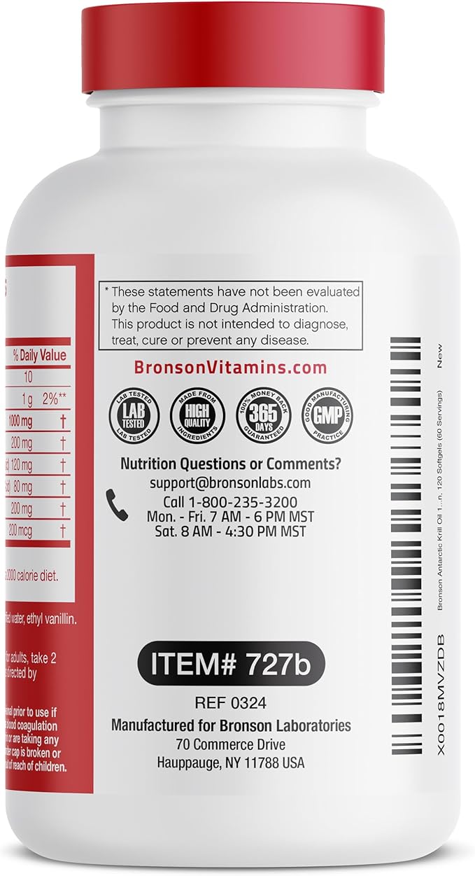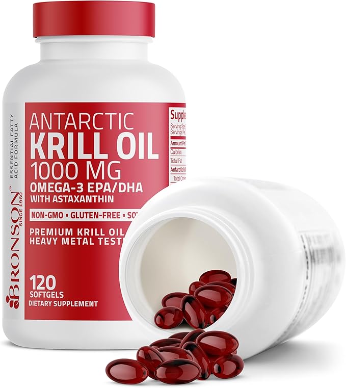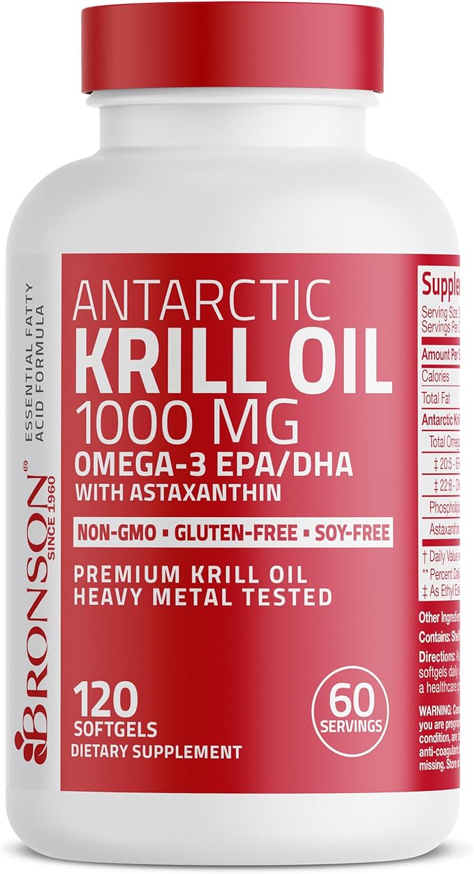 Bronson Antarctic Krill Oil 1000 mg with Omega-3s EPA, DHA, Astaxanthin and Phospholipids 120 Softgels