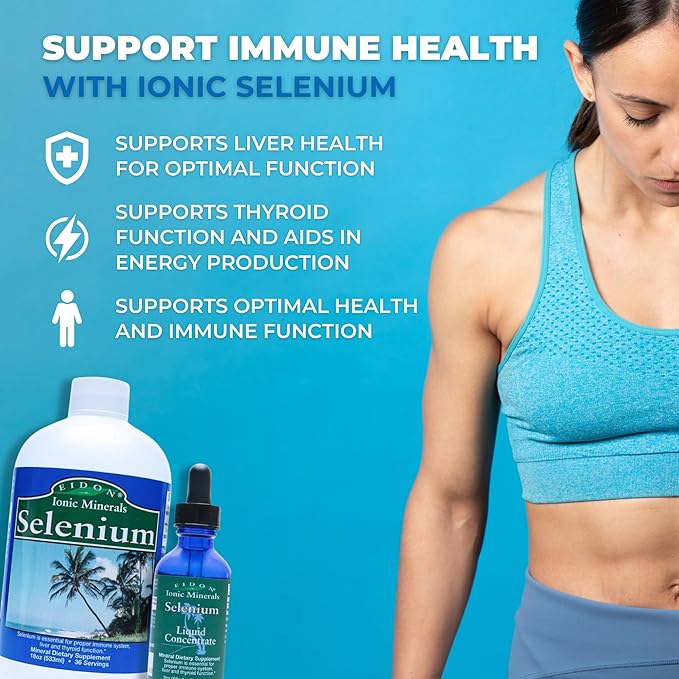 Eidon Ionic Minerals Liquid Selenium, Selenium Drops, Sodium Selenate Supplement, Support Liver Health and Thyroid Function, Immune System Support, 2 oz