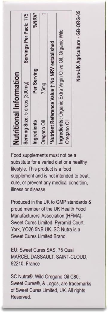 Wild Oregano Oil C80 Soil Association Certified Organic - High Strength 80% Carvacrol - Origanum Vulgare Oil | 25ml / 0.85 Fl oz