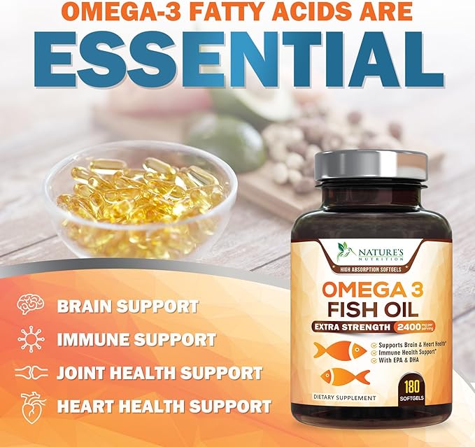 - Omega 3 Fish Oil Supplement 2400 mg: Omega3 omega three extra strength high dha epa epadha fatty acid for humans adults women men kids from health nutrition naturals best wild caught natural vitamins acids fishoil oul triple strength extra free burpless lemon joint brain heart support oils triglyceride pescado omegas onega omaga omga omaga3 softgels gummies chewable liquid aceite gomitas gummy pills capsules 2400mg 1200 mg 1200