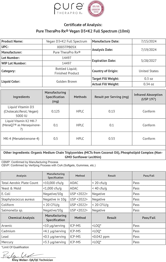 - πππππππ ππππππ: All our supplements are lab-tested for quality and purity. We do not use fillers, excipients, or flow agents in our supplements. Our Pure TheraPro Rx Vitamin D3 + K2 has no gluten, wheat, yeast, animal or dairy products, artificial preservatives, sweeteners, or colors.