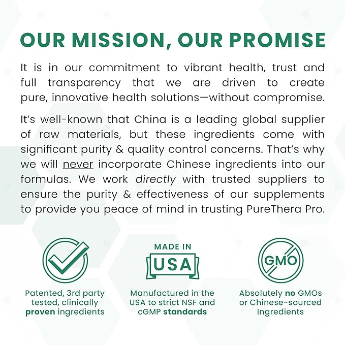 - πππππ ππ: Pure TheraPro was founded in Denver Colorado to formulate and manufacture the highest quality supplements available on the market today. Purity is our priority, which is why we insist on using patented, clinically studied ingredients, and never utilizing fillers, flow agents, excipients, or ingredients sourced from China. We also never use dairy, gluten, corn, soy, or other common allergens in any of our class-leading, practitioner-recommended formulas.