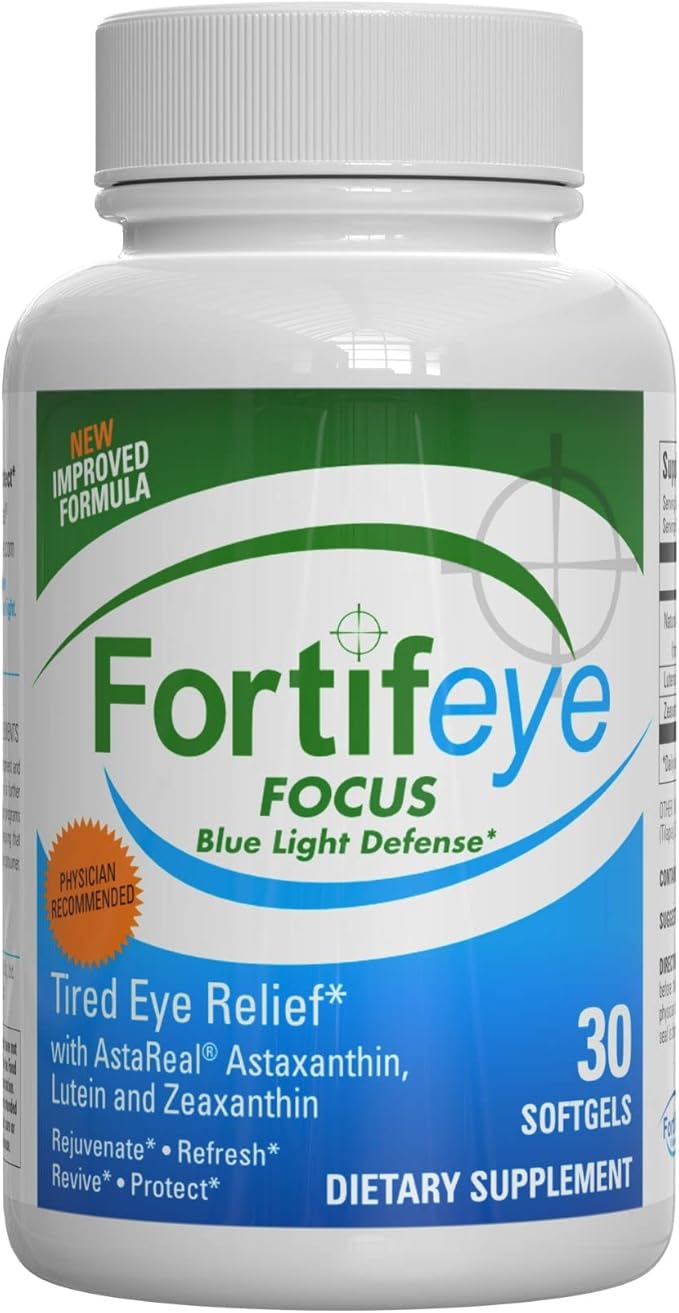 Fortifeye Focus Eye Care Supplement | Triple Carotenoid Including Astaxanthin, Lutein, and Zeaxanthin | 30 Softgel Capsules