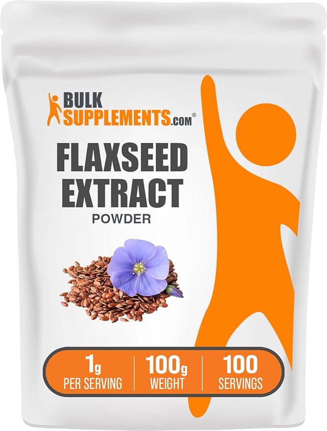 BulkSupplements.com Flaxseed Extract Powder - Omega-3 Supplement, Flaxseed Powder - Vegan & Gluten Free, 1g per Serving, 100g (3.5 oz) (Pack of 1)