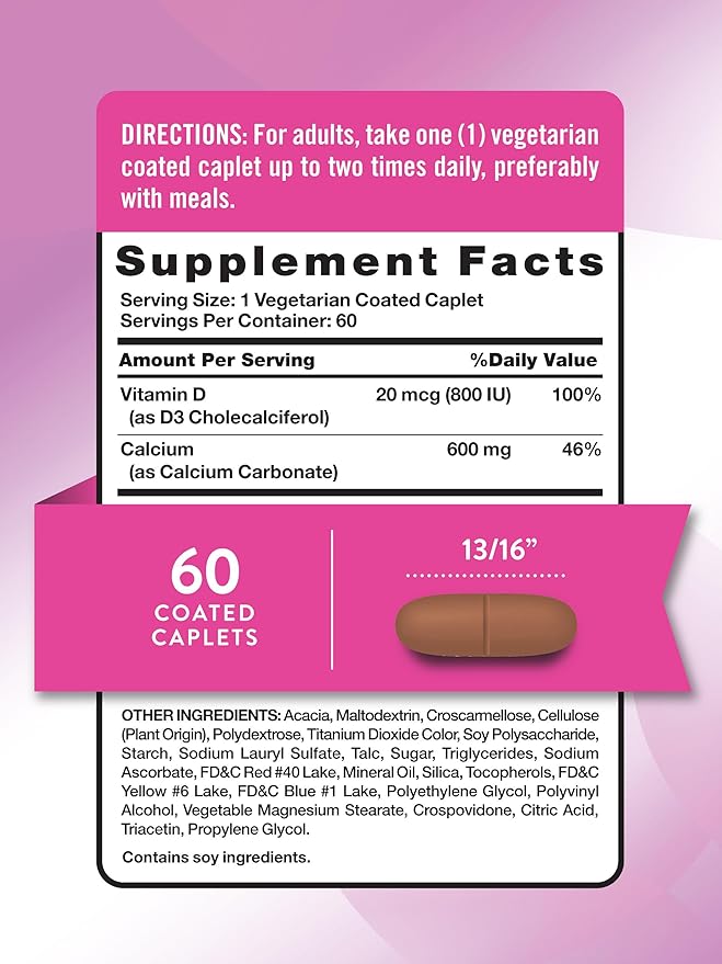 - VEGETARIAN COATED CAPLETS: Receive Calcium and Vitamin D3 in one convenient formula.
